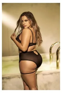 MAPALÉ Ensemble Noir Grande Taille – Soutien Gorge & Culotte Porte Jarretelles