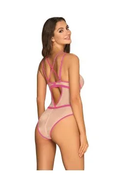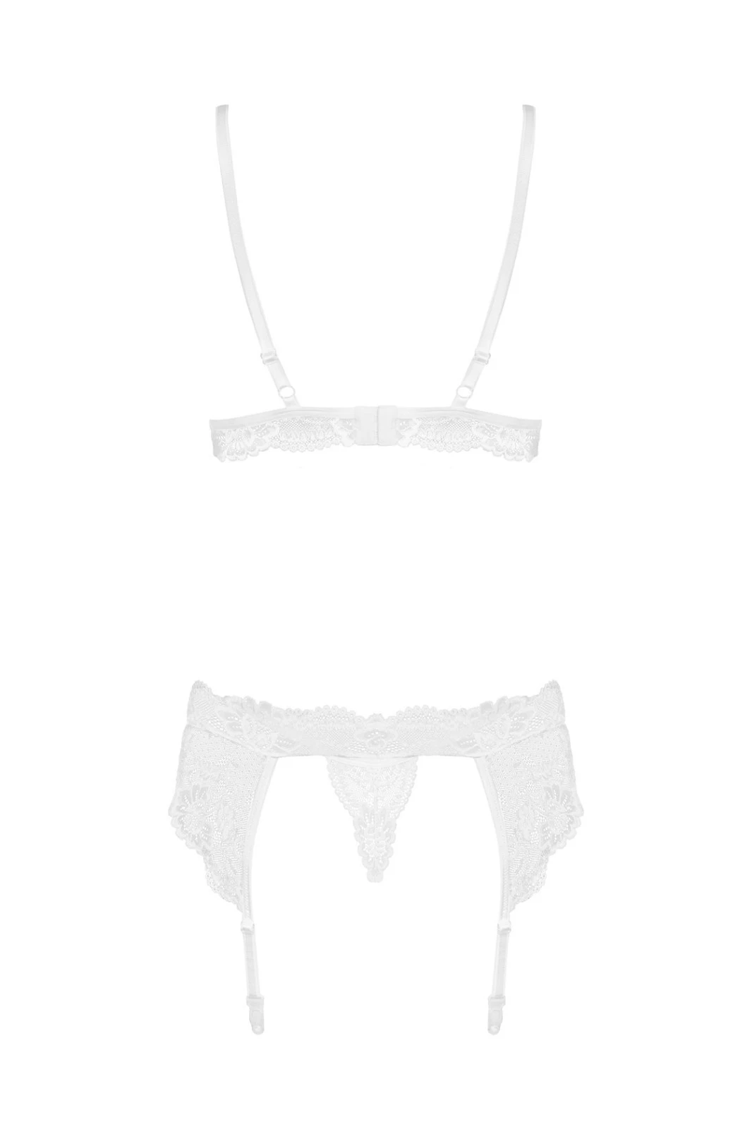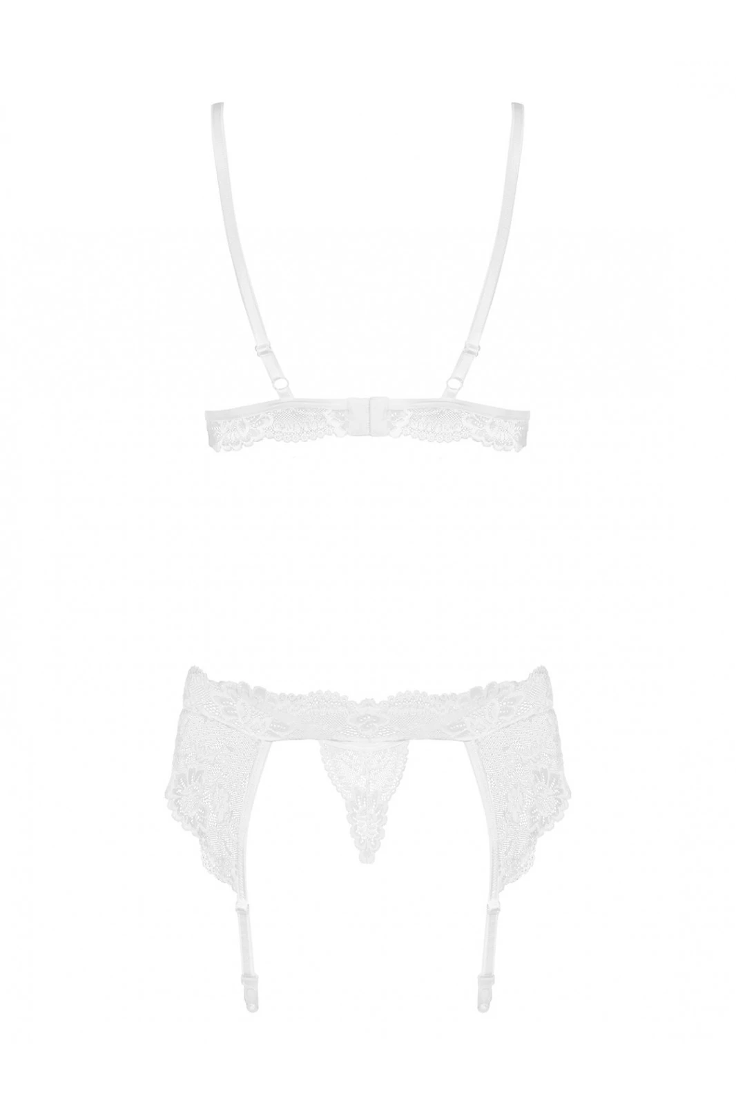 Le porte-jarretelles blanc possède une coupe splendide qui sur l’arrière laisse une jolie vue.
