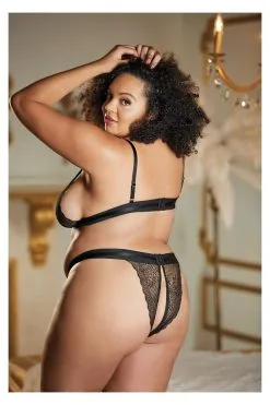 Allure Ensemble Noir Grande Taille – Soutien Gorge Fendu & String Ouvert