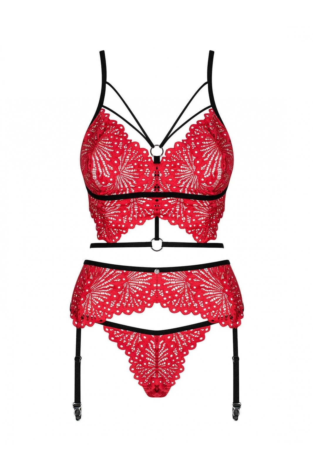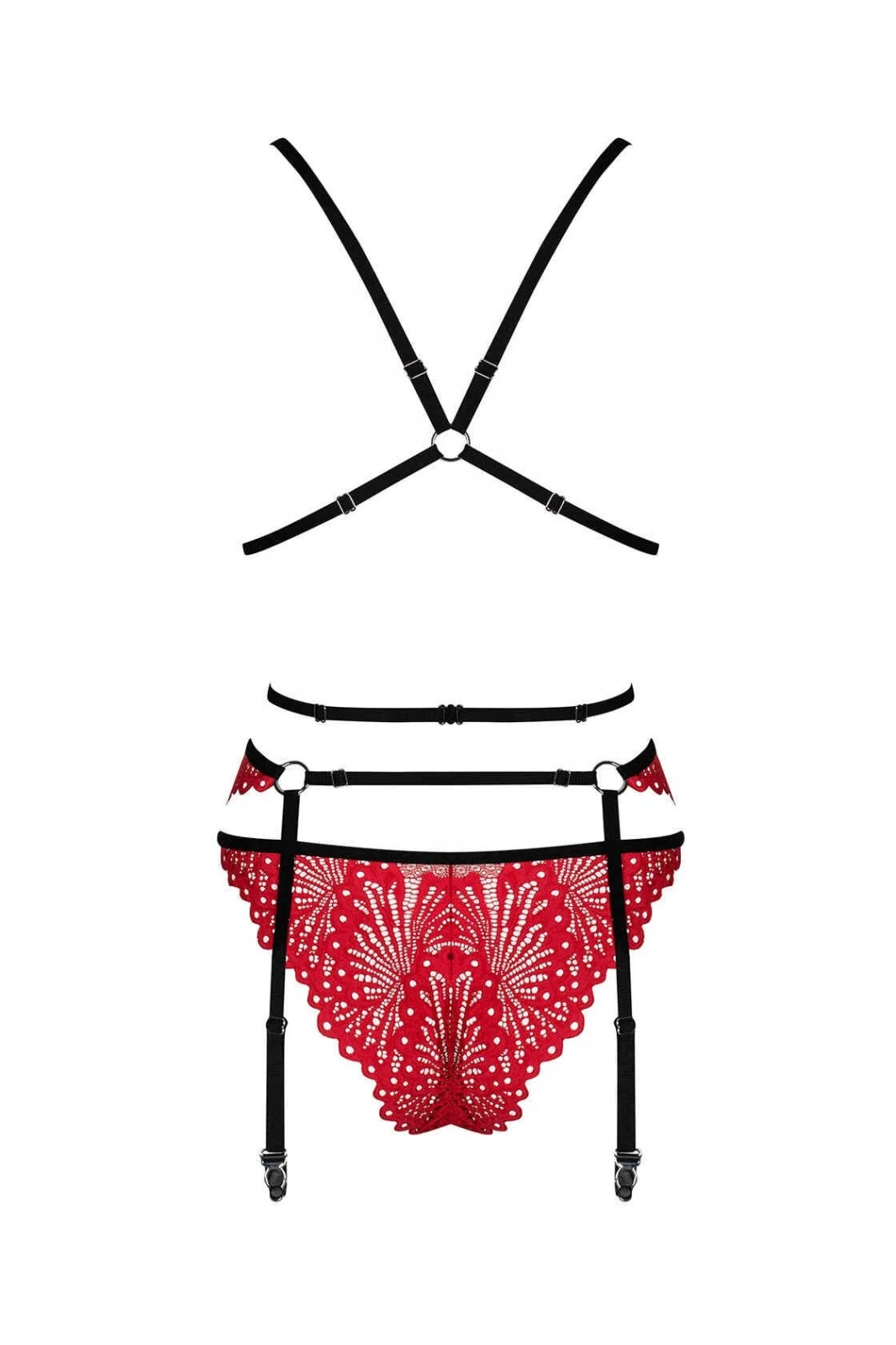 - Un soutien-gorge souple avec bretelles réglables croisées au dos et des anneaux ornementaux reliant les lanières