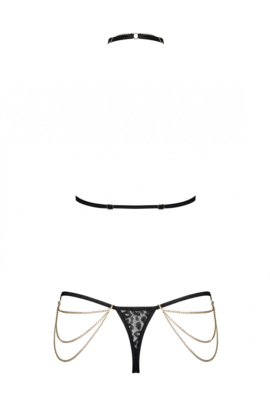 – L’ensemble inclut un soutien-gorge, un tanga et des chaînes