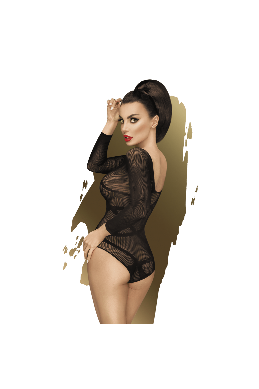Body noir maille fine ultra sexy jouant sur la transparence, une lingerie érotique signée Penthouse Lingerie.